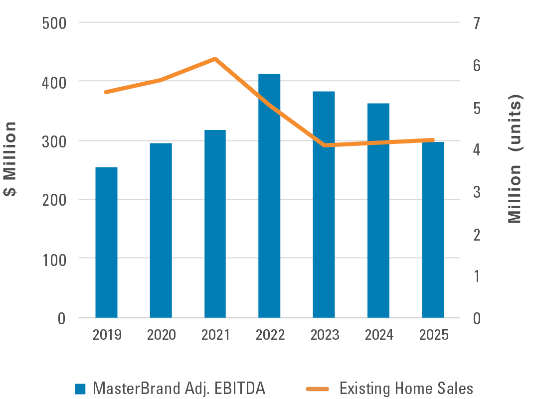 Weak housing turnover and tariff-driven cost pressure have weighed on MasterBrand’s earnings. As demand normalizes and the American Woodmark acquisition expands its scale and flexibility, we see a clear path to higher profitability.